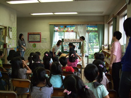 小学校低学年から中学年と教員 |